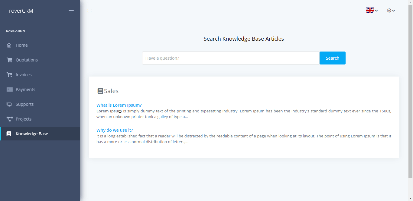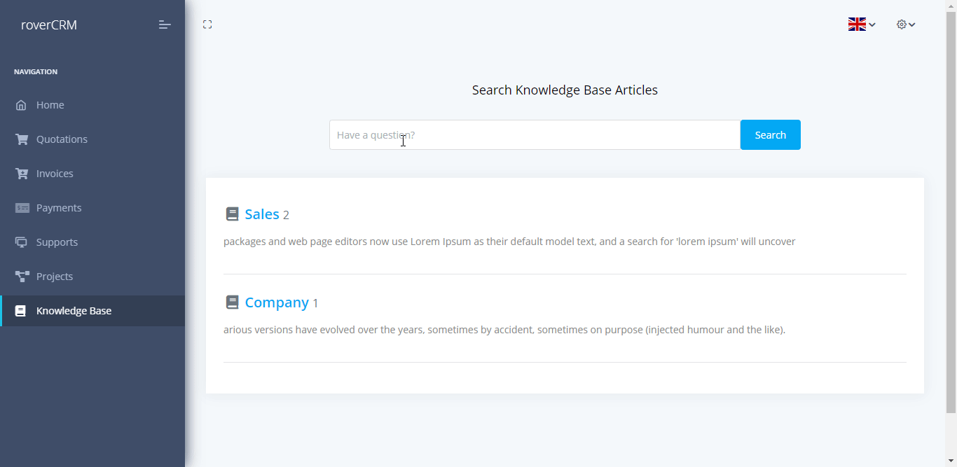You can Search Knowledge Base by a click on search button.