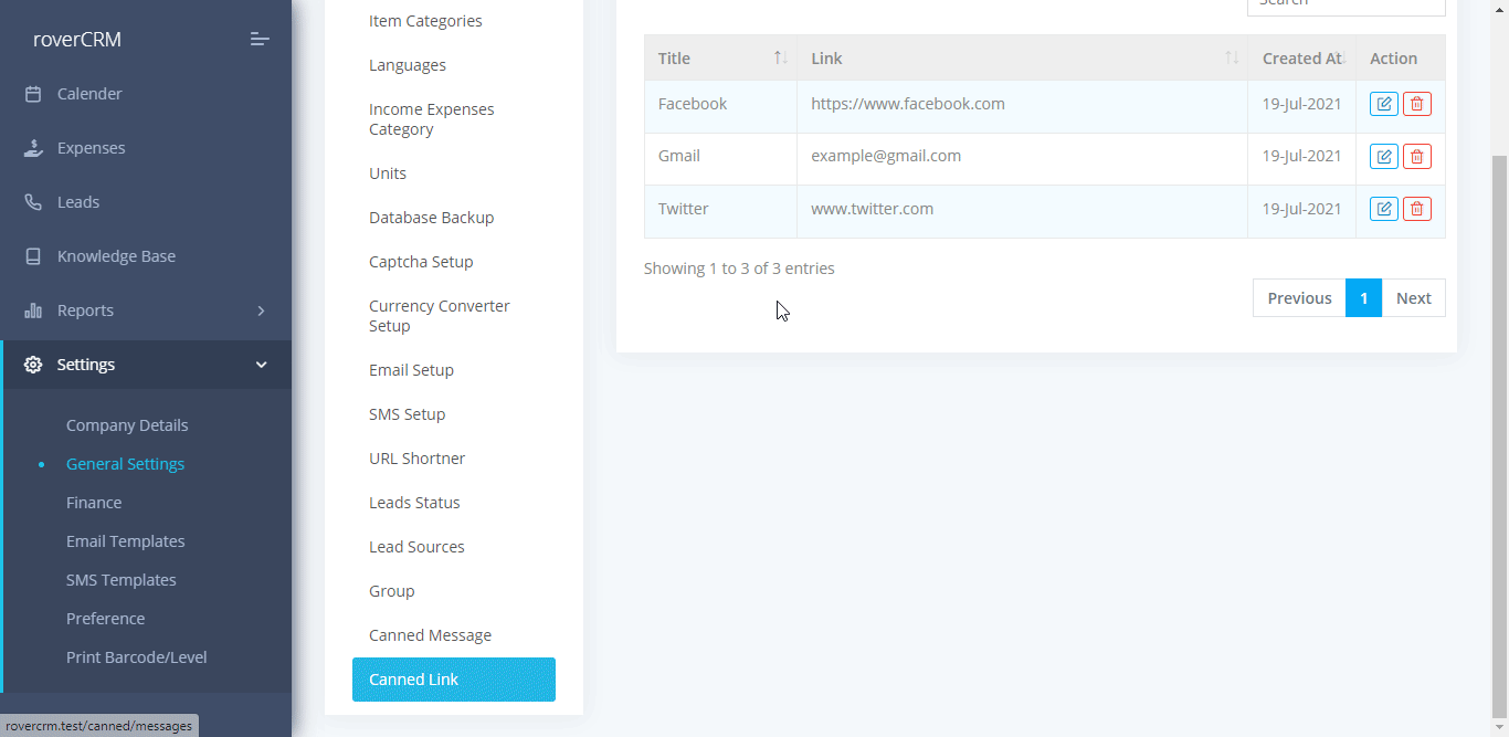 To manage Canned Link, go to Settings > General Settings > Canned Link. In Canned Link, you can add, edit and delete Canned Link.
