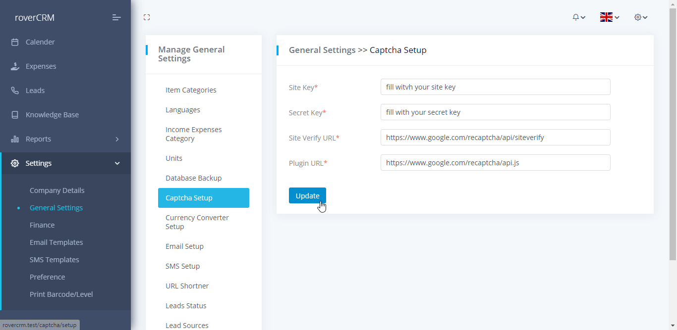 Go to Settings > General settings > SMS Setup to setup SMS configuration. To setup SMS of twilio you will need key and secret.