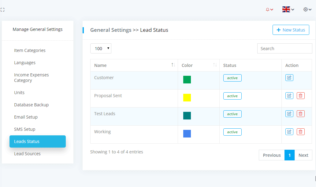 To manage Leads Status, go to Settings > General Settings > Leads Status. In Leads Status you can add, edit and delete categories.