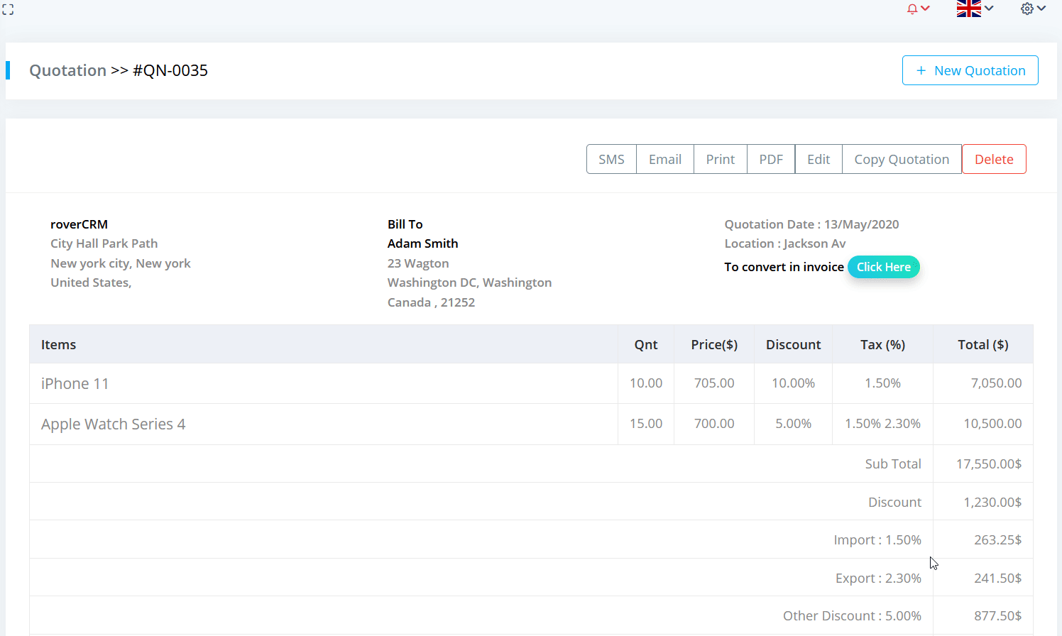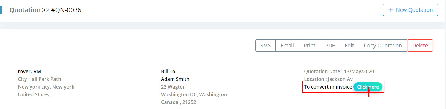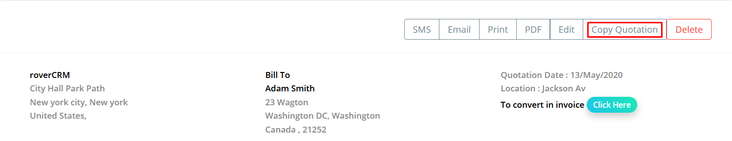 To copy the Quotation, click on Copy Quotation & submit the form. You will see the copied quotation on Quotation list.